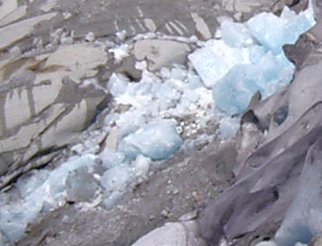 グリムゼル峠の頂上で半分氷結したトーテン湖(死の湖)を見て、フルカ峠の頂上・ベルベデーレではアイスグロッテ(氷河のトンネル)に入りましたネー。 その澄んだ青さにはビックリでした。
