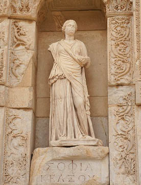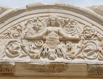エフェソスはギリシャ語(Έφεσος)から来ていて、今ではトルコ語でエフェス(Efes)と呼ばれている。,