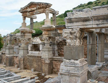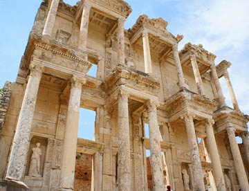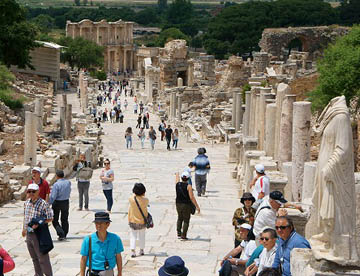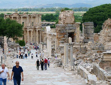 このエフェス遺跡はギリシャ・ローマ時代の街がほぼそっくり残されていて古代の街の様子がわかり、その繁栄ぶりが見て取れる。