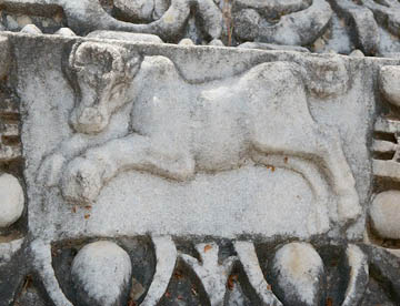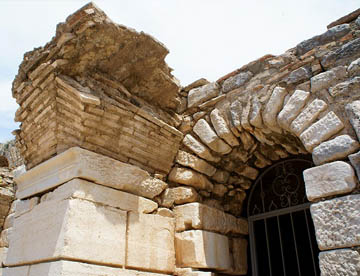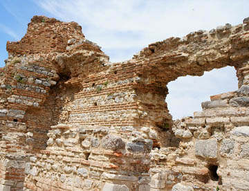 南の門から遺跡に入るとまずバリウスの浴場跡で、2世紀に造られた床下から蒸気で温めるいまでも使われているローマ風呂(ハマム)の原型が見られる。