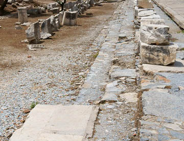 その隣はオデオン(1500人ほの収容の小劇場)。その前から左手にイシス神殿跡を見ながら列柱が並ぶクレスタ通りが延びている。