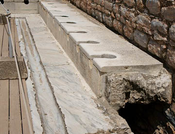 公共のトイレや住居の床にはモザイクタイルも見られ、この遺跡はまさに古代にタイムスリップさせてくれる。