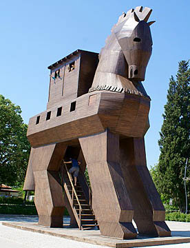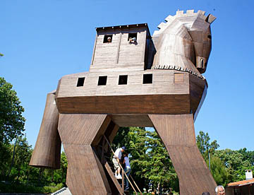 中でも紀元前1200年頃のトロイ戦争での「トロイの木馬」は有名で、その木馬の複製が置かれていて、中に入れるようになっている。