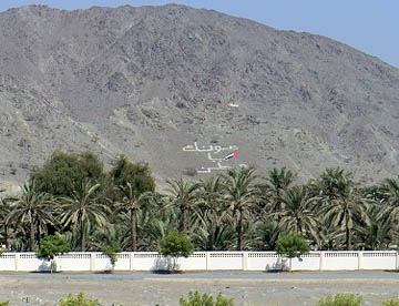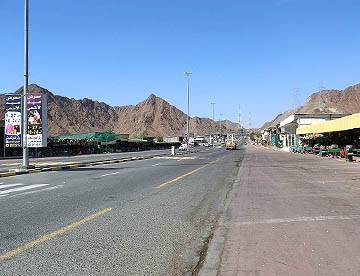 UAEというと砂漠の国というイメージが強いがドバイからフジャイラへと向かう道は岩山の間を抜けて行く。