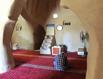 小さなモスクの中では一人の信者さんがお祈り中だった。