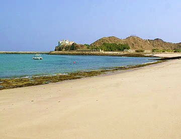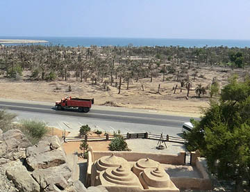モスク裏手の岩山に上ると小さな砦のようになっていて、アラビア湾の眺めが素晴らしい。