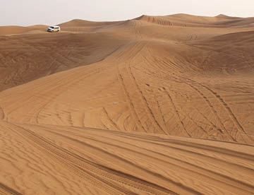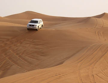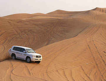 ドバイ滞在3日目 午後の4時過ぎにホテルより4WD車(トヨタのランクル)に乗り砂漠サファリへと向かう。