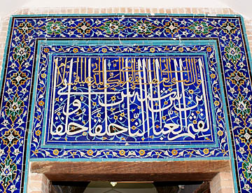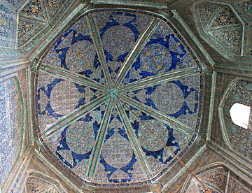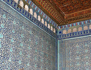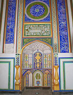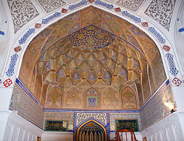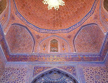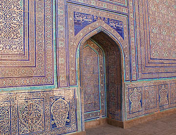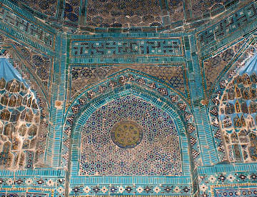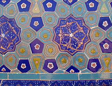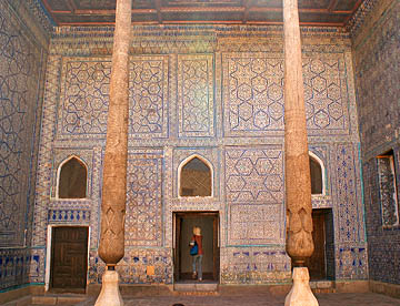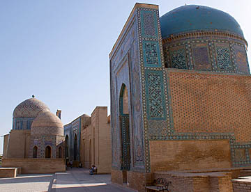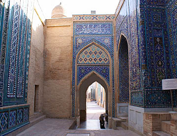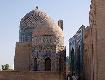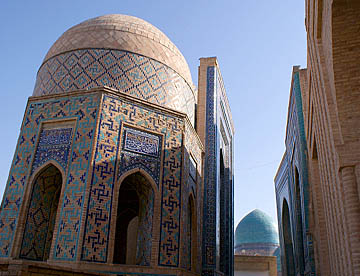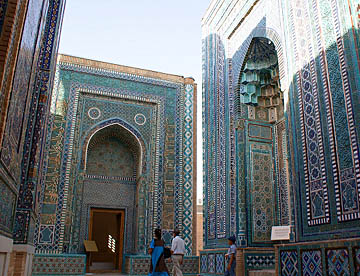 アフラジャブの丘を下ってティムール一族にゆかりの人々の霊廟が建ち並ぶシャーヒ・ジンダ廟群へ。たくさんの廟は外観も内装もせべてが異なっている。