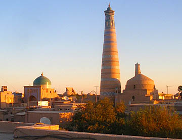 目が覚めると屋根の上に上って朝日を見てから朝食。その後出発までの時間を利用してイチャン・カラを再び観光。