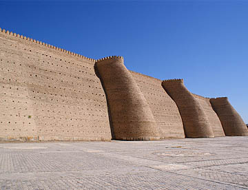 ボロハウズ・モスクの内部を見学して池をぐるっと回って広い道を横断すると高い城壁の上に構築された歴代の王の居城のアルクへ。