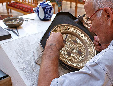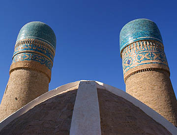 16時に再度ホテルを出て4本の塔を持つチャル・ミナルに入り屋根の上の塔を間近に見てナディール・ディバンベギ・メドレセ、ラビ・ハウズ、タキ、サラフォン、マゴキ・アットーソ・モスク等を見て回りタキ・テルパック・フルシャーン、タキ・ザルガラーンで名物のコウノトリの形をしたはさみ屋さんでお買い物。