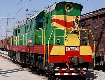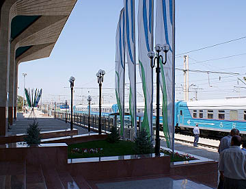 我々の列車はタシケント行きの「Sharq・9号」。牽引するのはディーゼル機関車。8時05分にカガン駅を出て、殆んど人の姿を見ることのない荒涼とした中を3時間弱でサマルカンド駅に到着。
