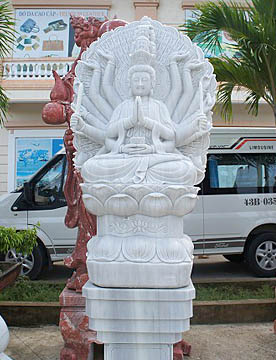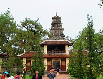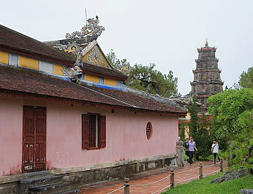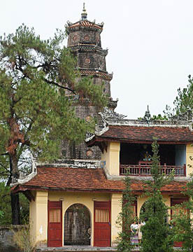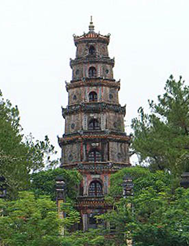 ティエン・ムー寺を代表する8角7層からなる中国風の塔「トゥニャン」は数々の詩に詠まれた優美な塔でフエで最も古く、フエを象徴する存在。高さは21.24mで「幸福と天の恵みを」意味するトゥニャン塔の各層には仏像が安置されています。
