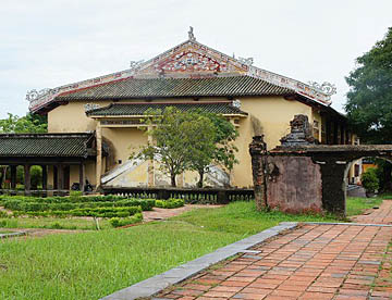 入って真正面にある赤い屋根の平屋の大きな建物は、王宮の正殿の太和殿です。王宮門と共に圧巻のスケール感を誇る中国の紫禁城を真似て造られたと言われています。1968年ベトナム戦争中に完全焼失してしまい現在の太和殿は1970年に再建されたもので、太和殿内は写真撮影禁止でした。