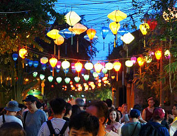 川に映り込む無数のランタンの灯りが醸し出すホイアンのエキゾチックな夜景と共に心に残ります。