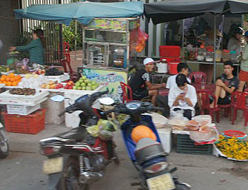 バクダン通り沿いは、夜になるととても華やかになります。ランタンの光が照らすナイト・マーケットは、何十もの屋台が並び、まるでお祭りの縁日のような光景です。毎日開催されており、かわいらしいランタンをはじめホイアン雑貨や服飾、刺繍製品など観光客向けの露店が並び狭い道は人であふれます。