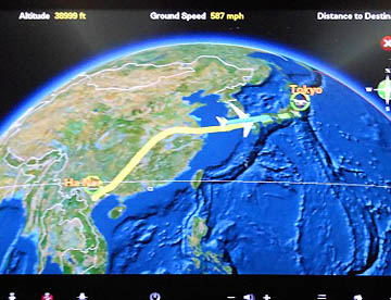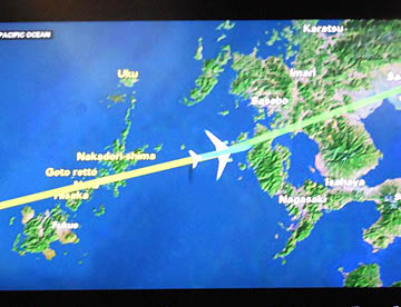 丁度五島列島あたりを飛行中に朝食が出て7時35分定刻に成田空港に到着。