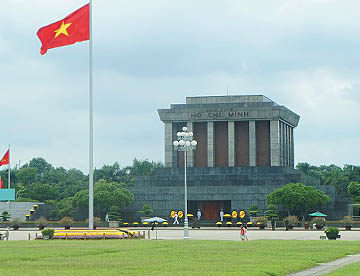 ベトナム初代大統領のホー・チ・ミンの霊廟。廟の周囲は静寂に包まれており、巨大で威厳のある建物の中は厳重に警備されている。