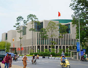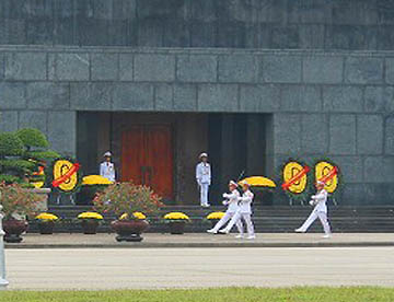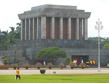 のホーチミン廟ができたのは1975年9月2日の建国記念日。総大理石造りの廟は、ハスの花をかたどっていて、内部にはベトナムの民族的英雄、ホーチミン主席の遺体がガラスケースに入れられて安置されている。