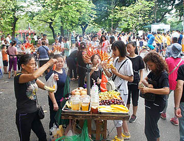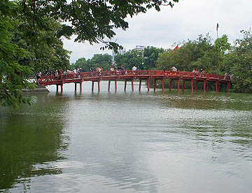 ハノイ市街の中心にある穏やかな姿の湖で1周約30分程で回れるので、散策をする人の姿が多い。