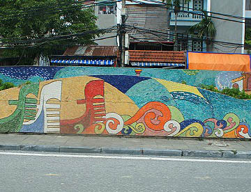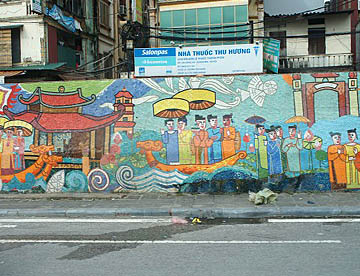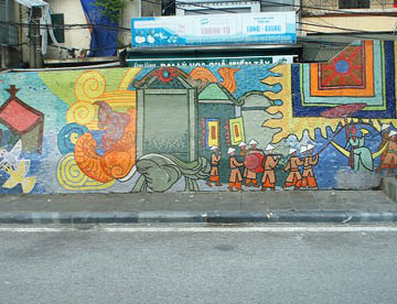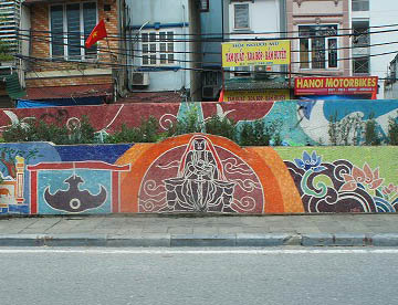 ハノイ遷都1000年の記念プロジェクトの一環として2007年にスタートしたこの壁画のプロジェクトは3年を経て2010年に完成しました。